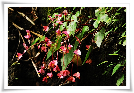 岩生秋海棠是臺灣的特有種植物,分布於本島中、南部之低、中海拔山區。顧名思義,所謂「岩生」秋海棠,主要的生育地就是在潮濕的岩壁上,而其特殊的形態,正是適合如此環境:植物體小而輕盈,易於著生於岩壁;花多而鮮豔,可以招蜂引蝶,利於繁殖後代;雌花柄細長,好讓風兒可以吹拂擺盪,再加上果實具有三片等長的大翅膀,更利於乘風遠颺,開疆拓土;走莖綿延,亦為另一種擴展地盤的良方;同時,大部分植物體在乾旱的冬季即脫落,只留下休眠的球狀塊莖度過不利生長的季節,以待來年春雨滋潤,再展風華。